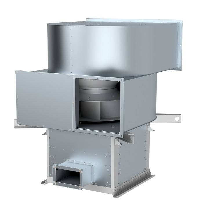 вентилятор для дымоудаления, максимальный расход воздуха 58 000 куб. м/ч, максимальный располагаемый напор 3 350 Па, шумоизоляция, взрывозащищенный, степень защиты: IP54, класс изоляции: F, количество фаз: 3, выброс воздуха: горизонтальный, тип подключения воздуховода: прямоугольный